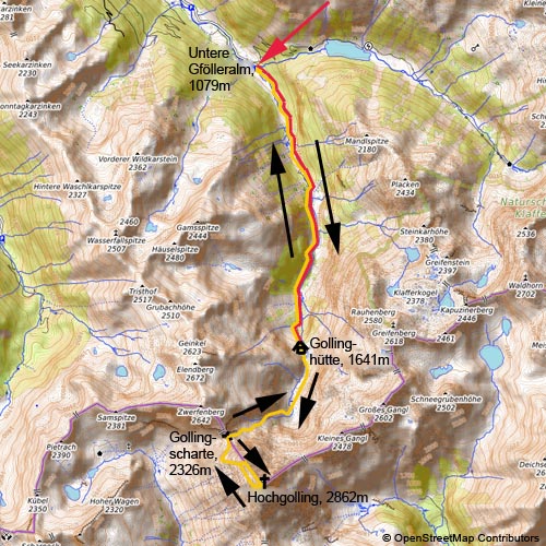 2. Tag: Gollinghütte - Gollingscharte, 2326m - Hochgolling, 2862m - Gollingscharte - Gollinghütte - Untere Gfölleralm